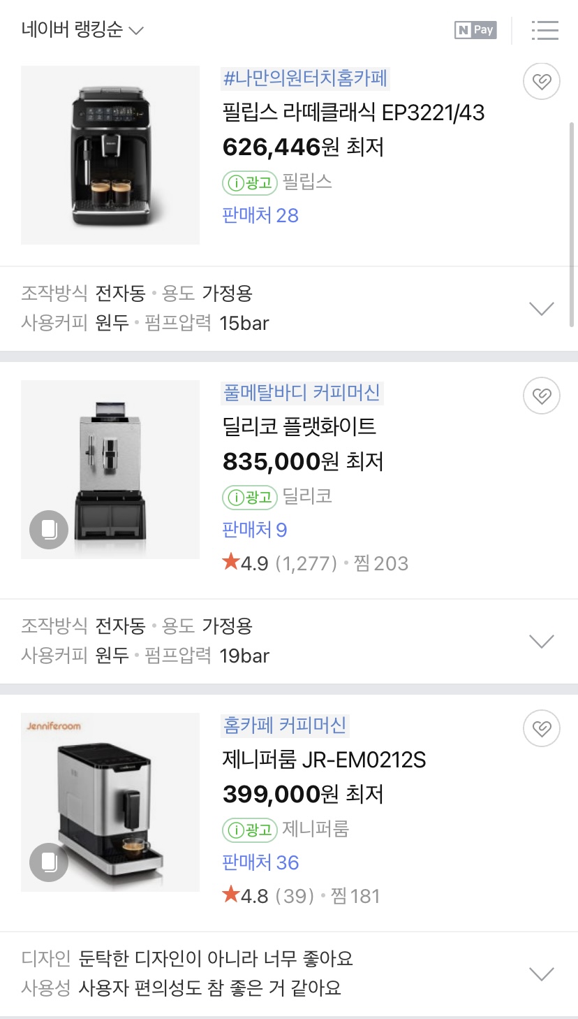 오늘은 가성비 전자동커피머신을 구매하기로 결심하고